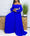 Stylish Long Short Sleeve Printed V-Neck Dress in Deep Blue