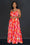 Vibrant Printed Sleeveless Long Dress Set in Red and Pink