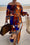 Chic Printed Lantern Sleeve Two-Piece Set with Slit Skirt