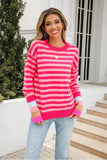 Chic Long Sleeve Striped Sweater with Round Neck Design