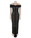 Fashionable Sleeveless Pleated Mesh Ultra Long Dress for Women