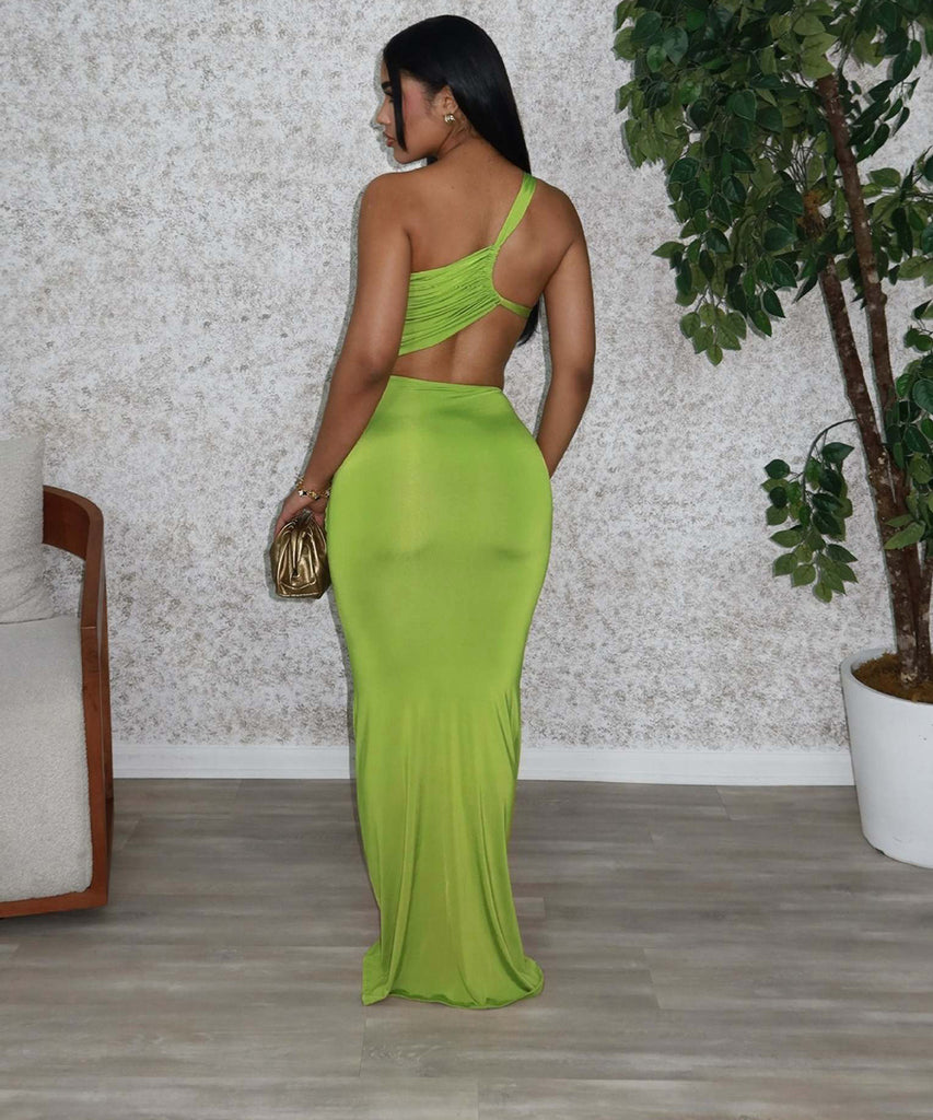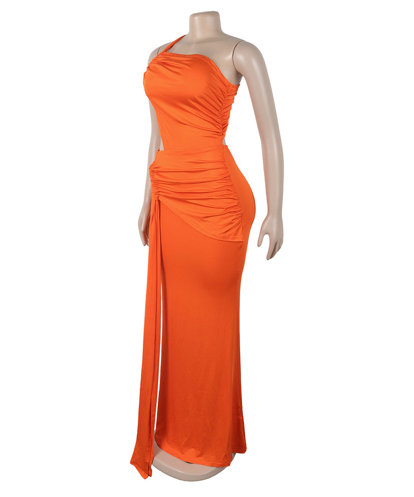 Don?€?t miss your chance to own this wardrobe staple. Order your Fashionable Single-Shoulder Pleated Dress today and step out in style!