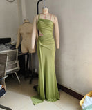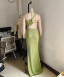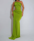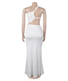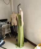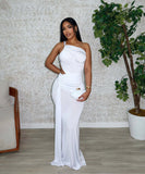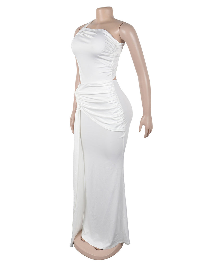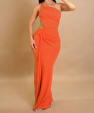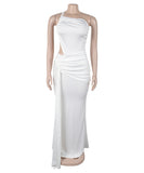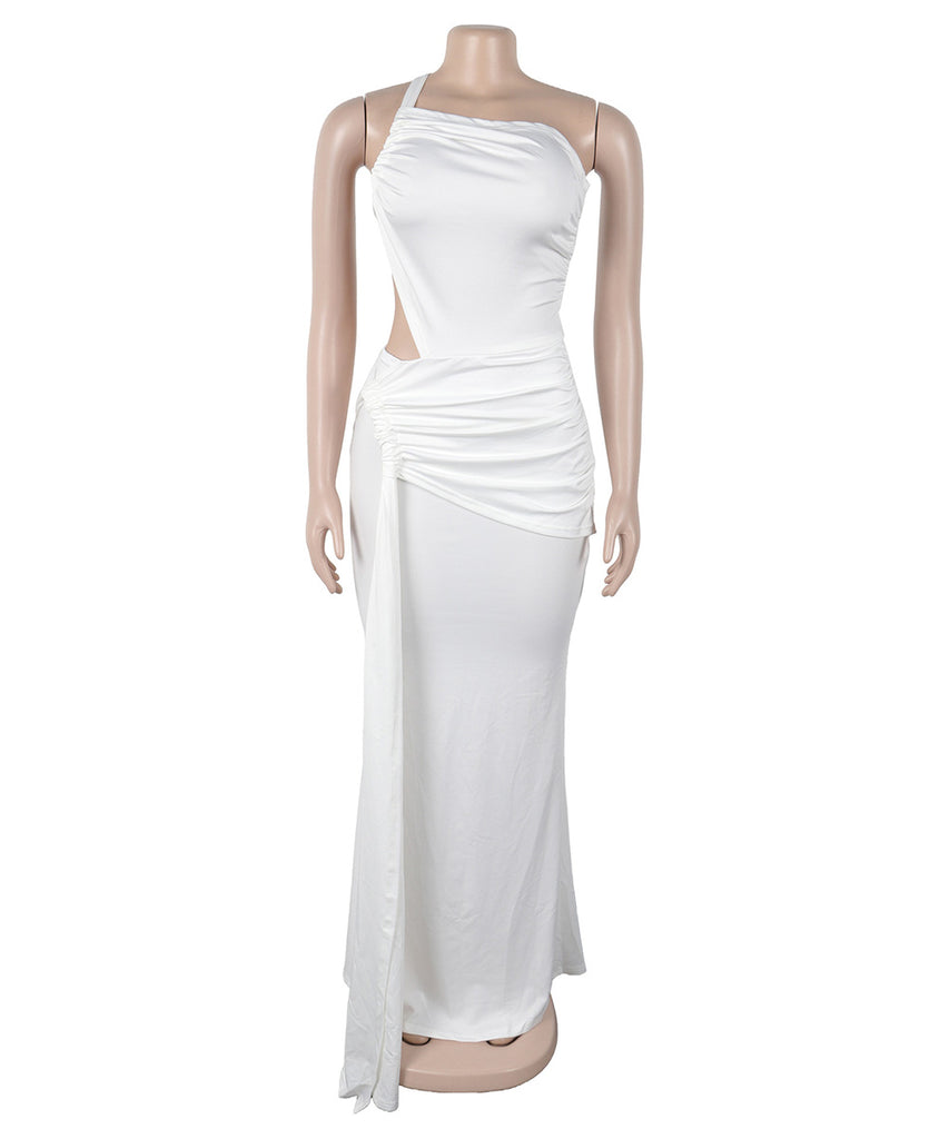 Fashionable Solid Color Single Shoulder Pleated Dress
