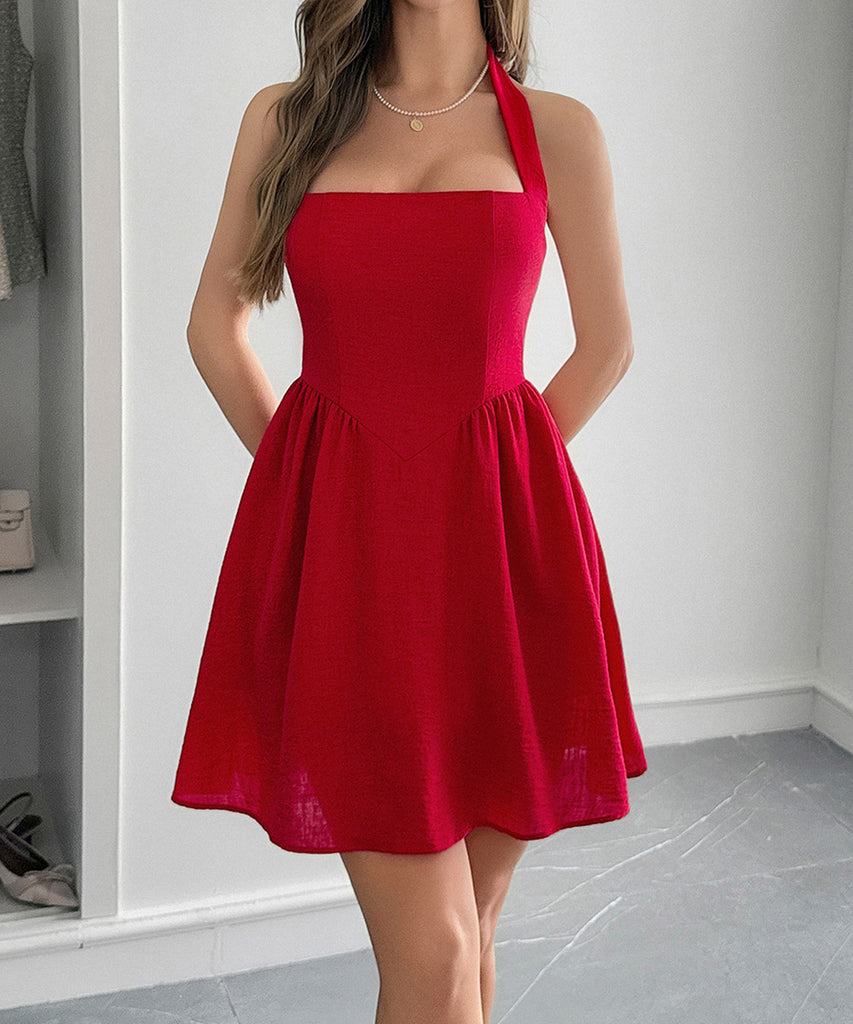 Elegant Halter Neck Mini Dress with Stylish Skirt in Various Colors