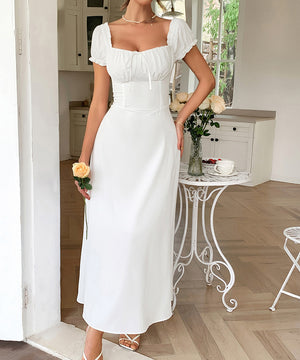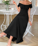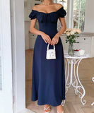 This Short-sleeved One-shoulder Maxi Dress is not just a piece of clothing; it's a statement. Pair it with your favorite accessories for an effortlessly chic look. Don't miss out on the chance to make heads turn!