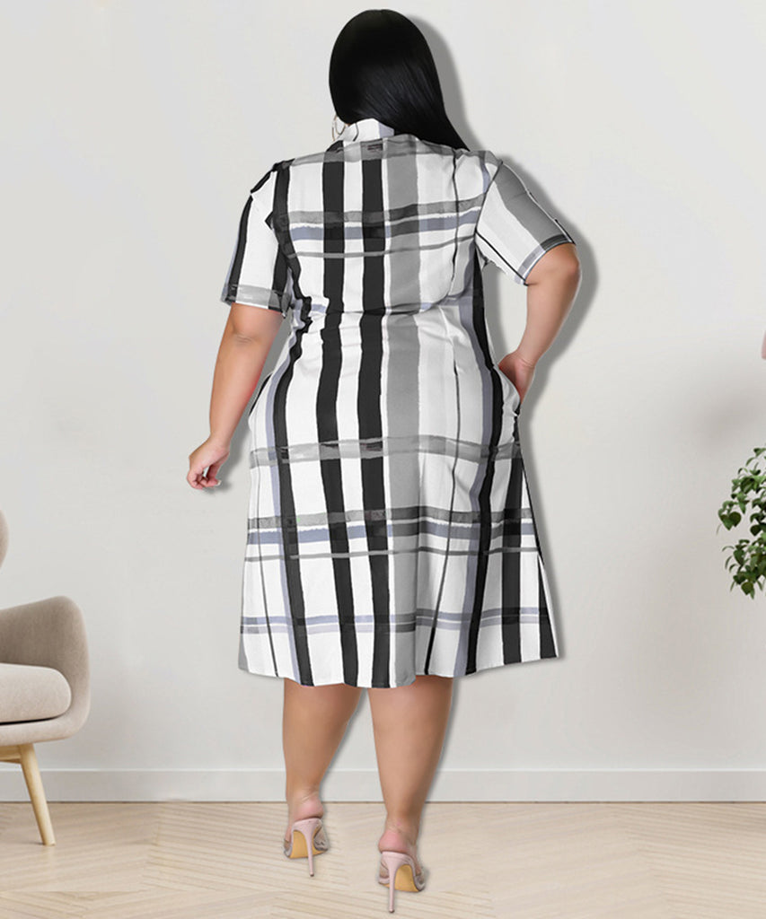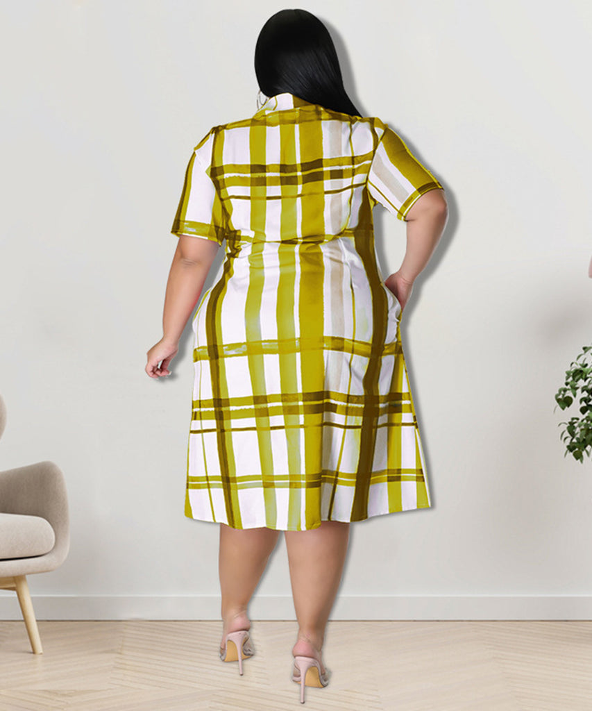 Elevate your wardrobe with our Big Size Checkered Short-Sleeved Shirt Dress, designed to blend comfort with effortless style. Crafted from 100% high-quality polyester, this dress offers a lightweight and breathable feel, perfect for all-day wear. Its short sleeves keep you cool and relaxed, while the elegant cowl neck adds a touch of sophistication to your casual look.