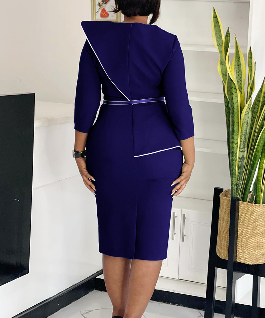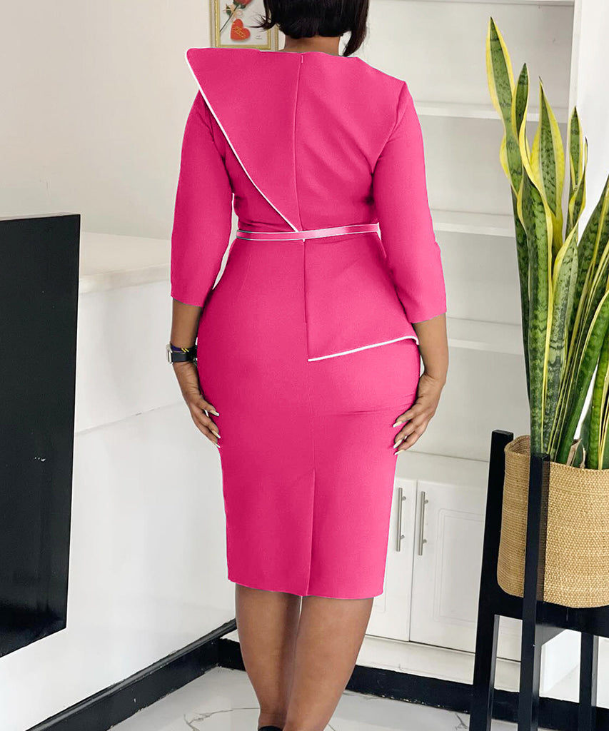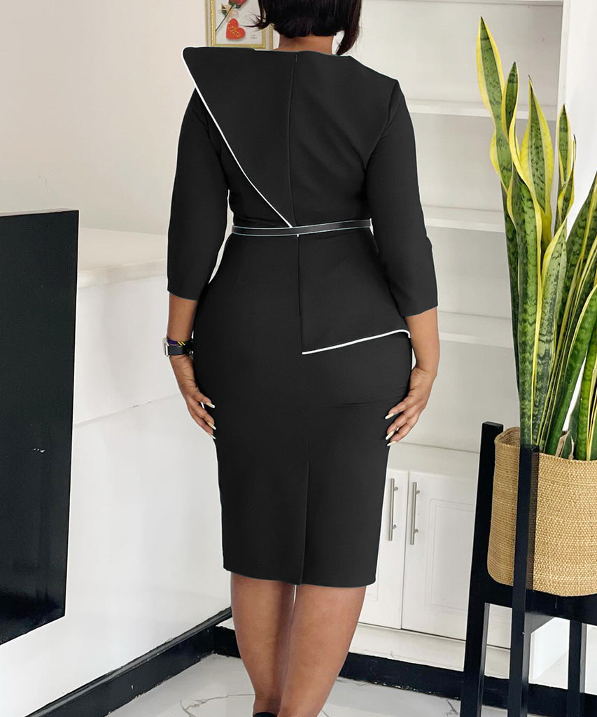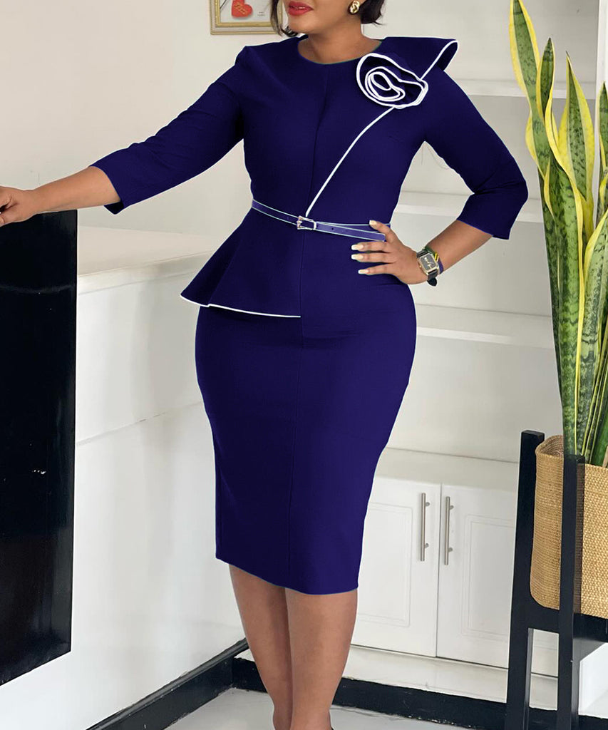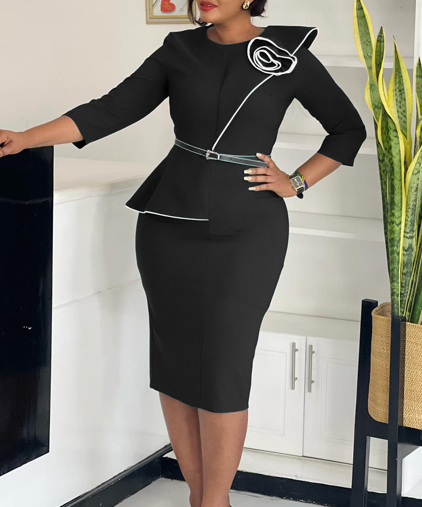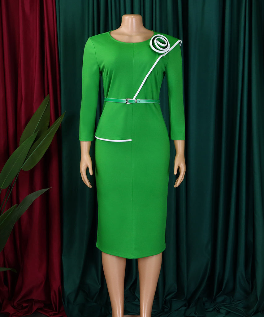 Designed with a sleek pencil skirt silhouette, it accentuates your curves while the subtle A-line cut adds a touch of elegance and ease. The included belt cinches the waist, creating a polished and refined look suitable for both professional settings and special occasions.