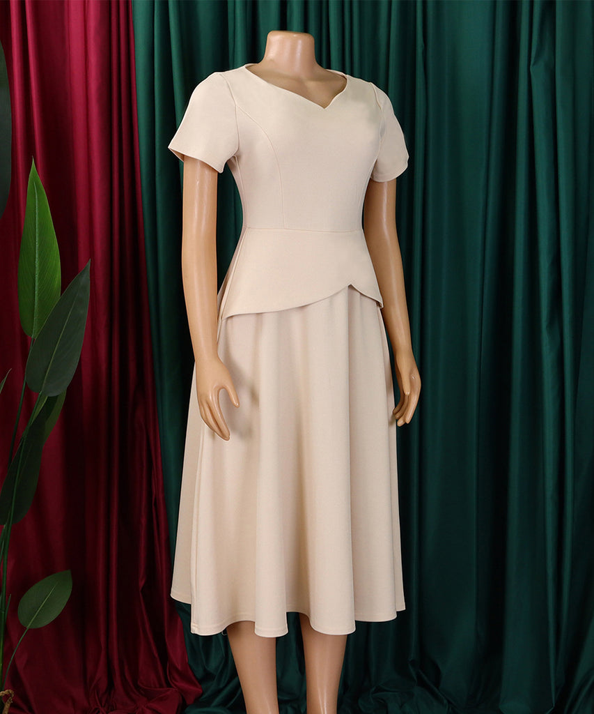 Elevate your fashion game today—add the Fashionable Solid Color V Neck Short Sleeve A Line Dress to your cart and embrace a look that radiates confidence!