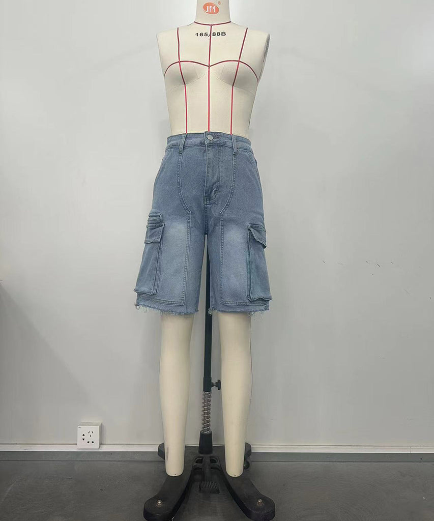 Light Blue Ripped Denim Pocket Jeans for Work and Casual Wear