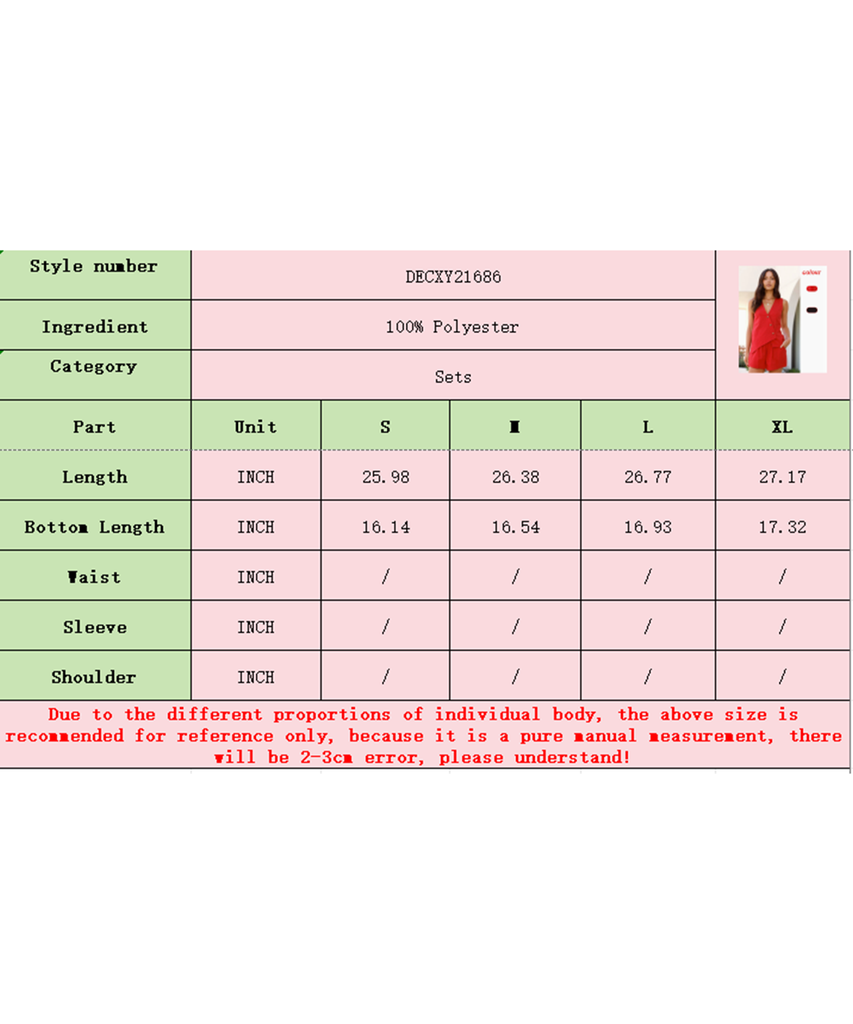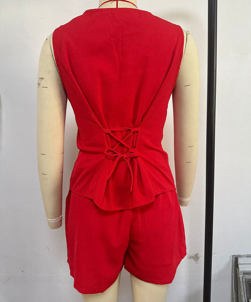 Refresh your casual closet with this solid-color two-piece set, featuring short pants and a casual V-neck pullover with a waistband design. Crafted from 100% Polyester, this ensemble delivers lightweight comfort and easy-care practicality in red or black.