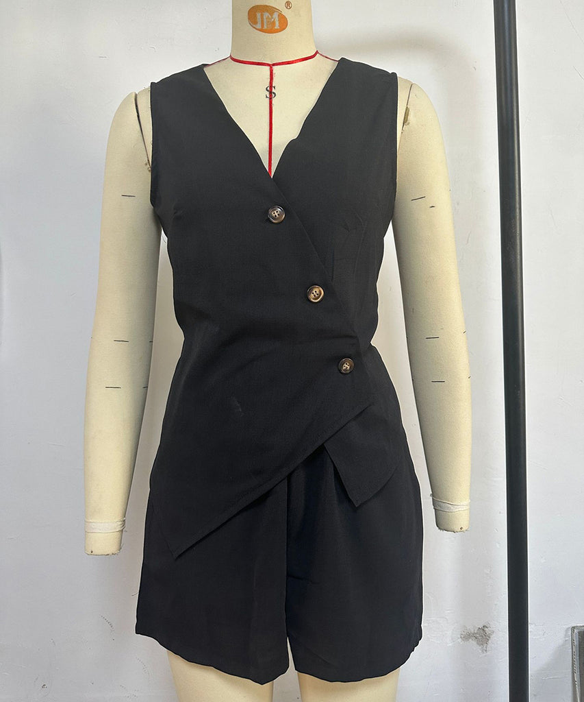 - Two-piece set: solid-color short pants and a casual V-neck pullover with a waistband design for a cohesive, ready-to-wear look