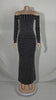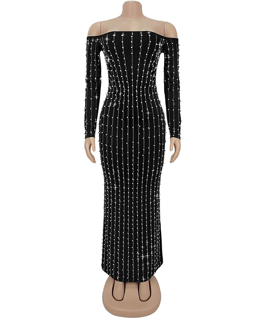 Black sequined dress crafted from 95% polyester + 5% spandex for a smooth, stretchable fit. It features sequins and built-in arm coverings for a glamorous, covered look.