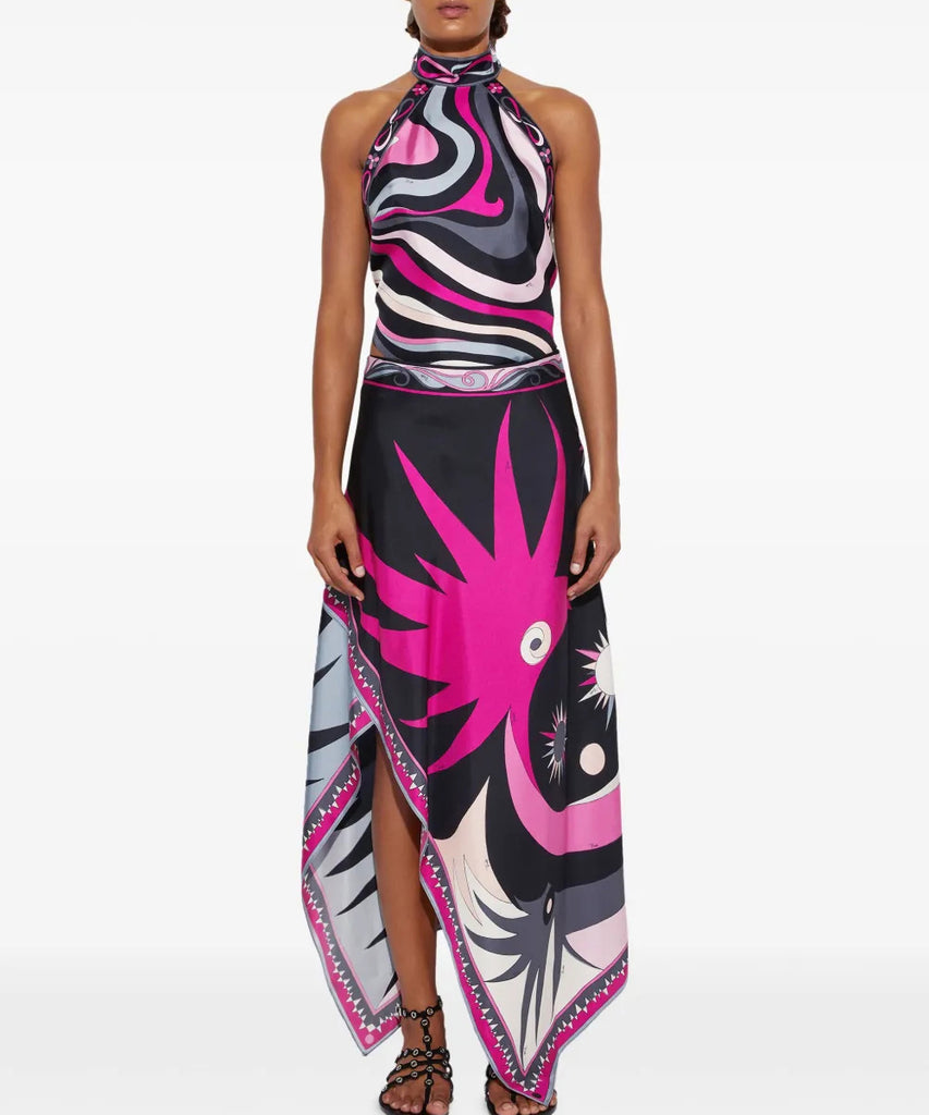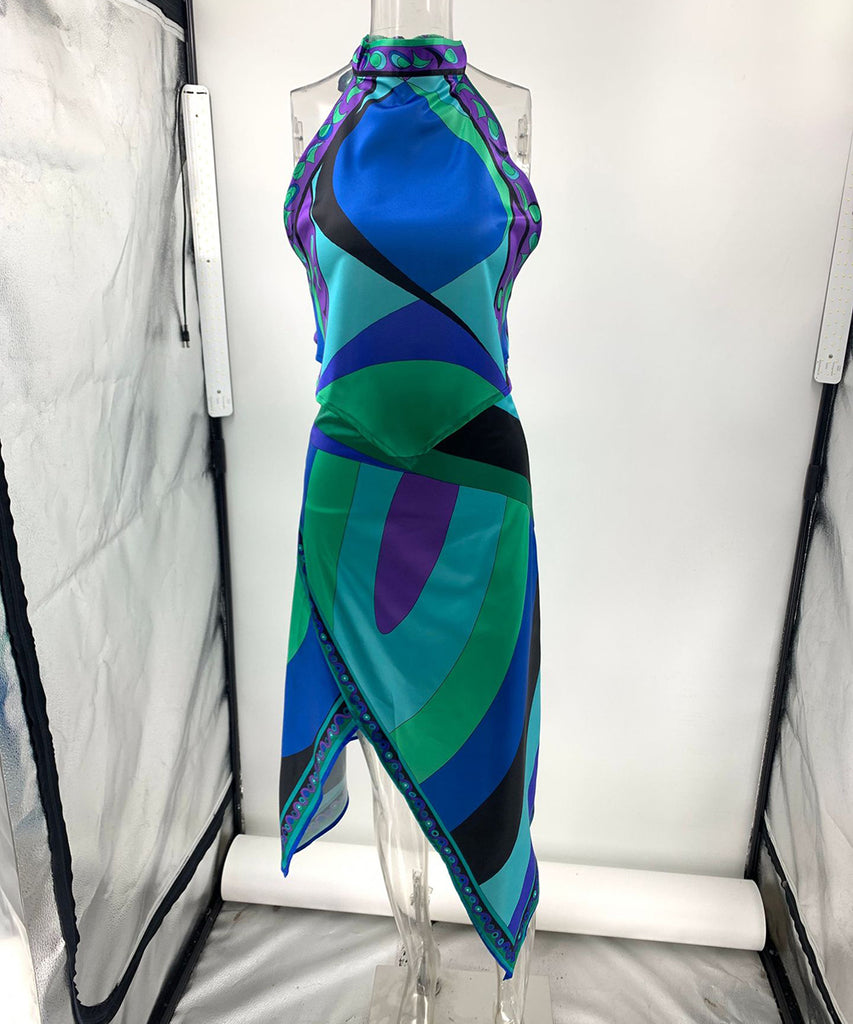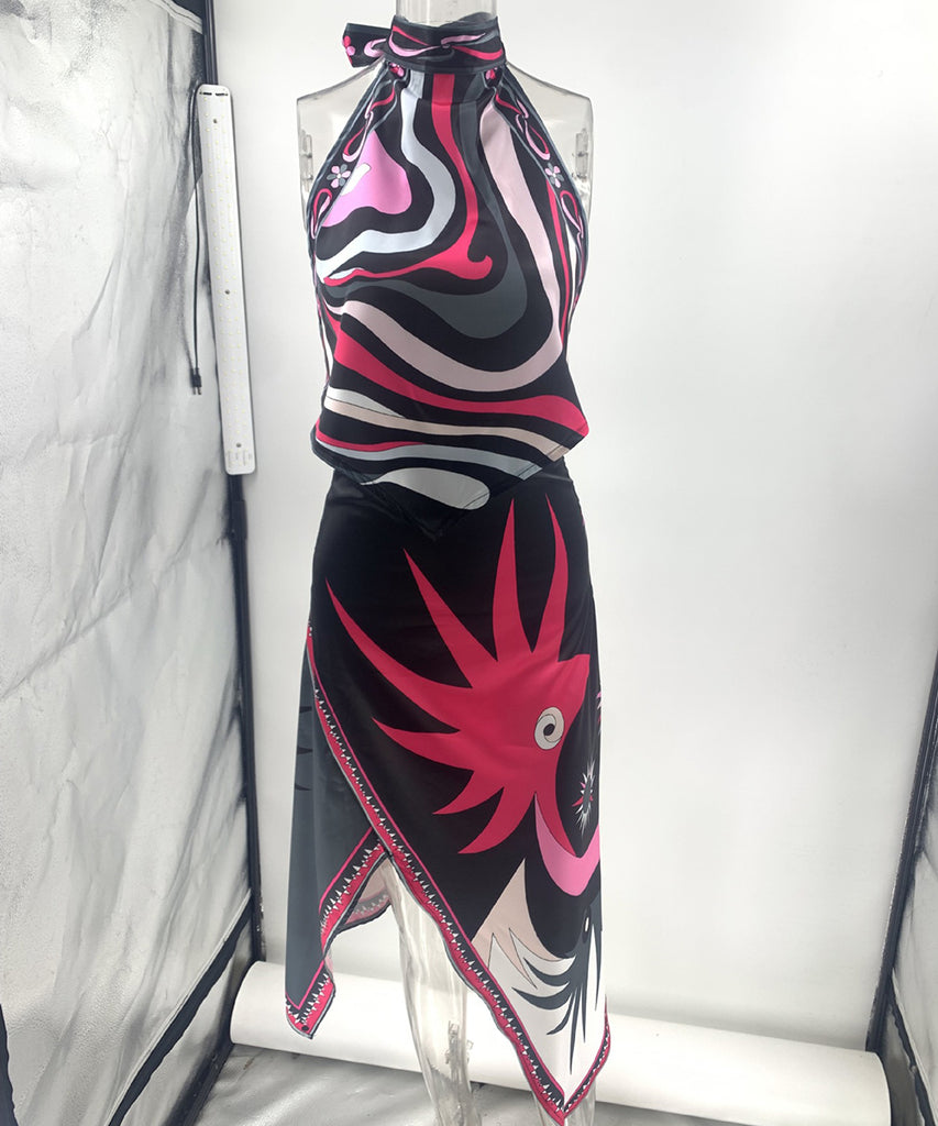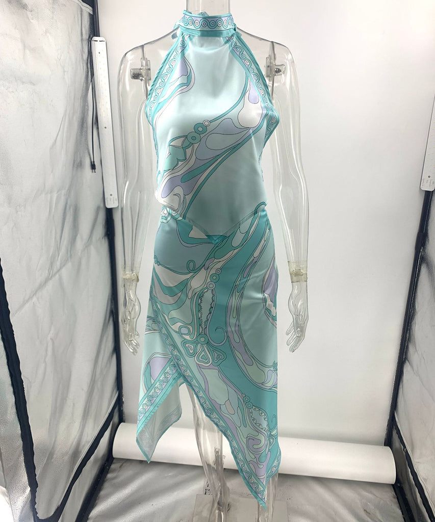 Made from 100% Polyester satin with a printed finish, this semi-formal two-piece skirt set offers a sleek, tailored fit. The satin neckline blouse features an exposed back for a bold, modern twist.