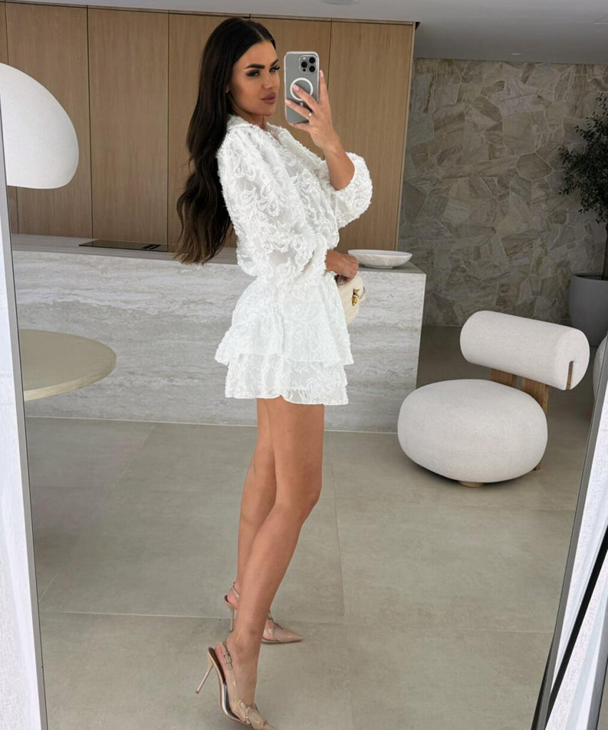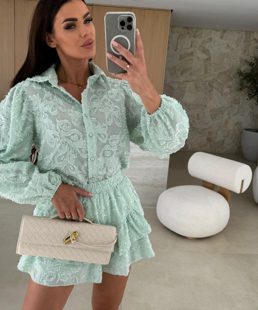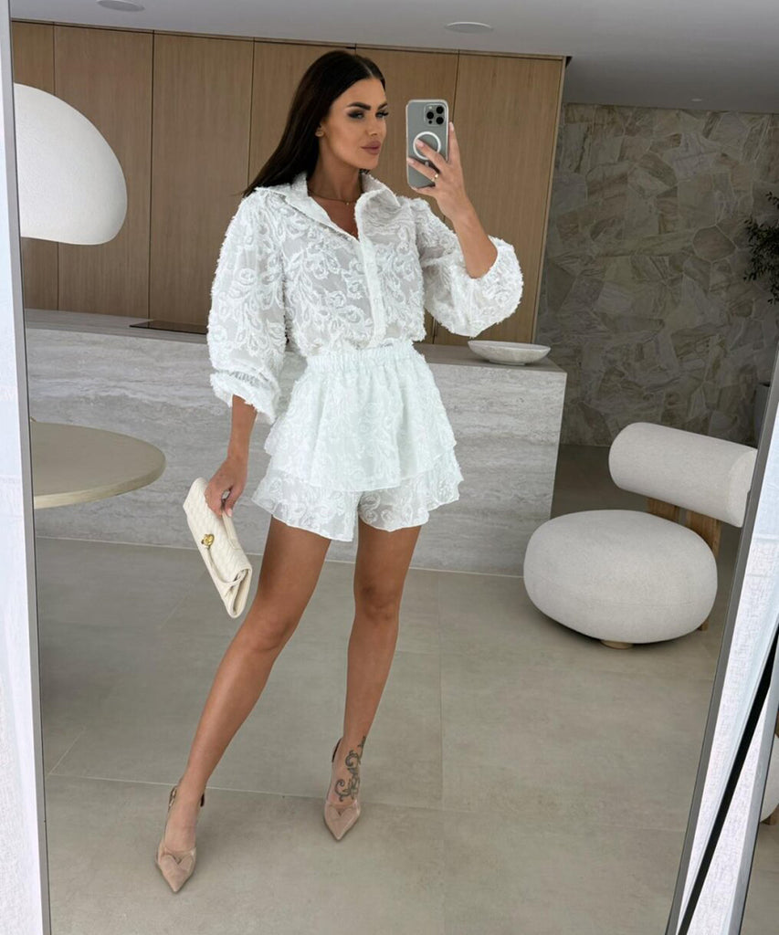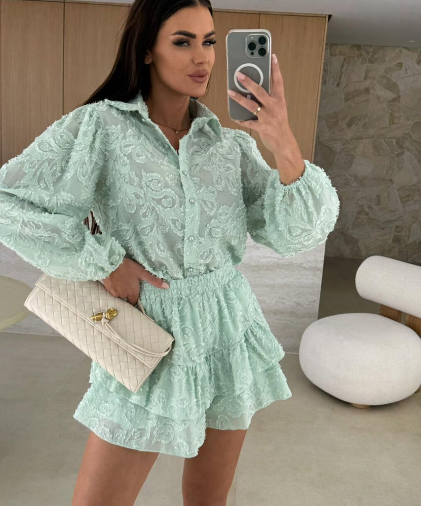 This lace cutout set is designed for the modern woman who appreciates both sophistication and comfort. Its premium fabric ensures breathability, making it perfect for day-long wear. The set is tailored to flatter your figure while providing freedom of movement, setting it apart from standard casual wear.